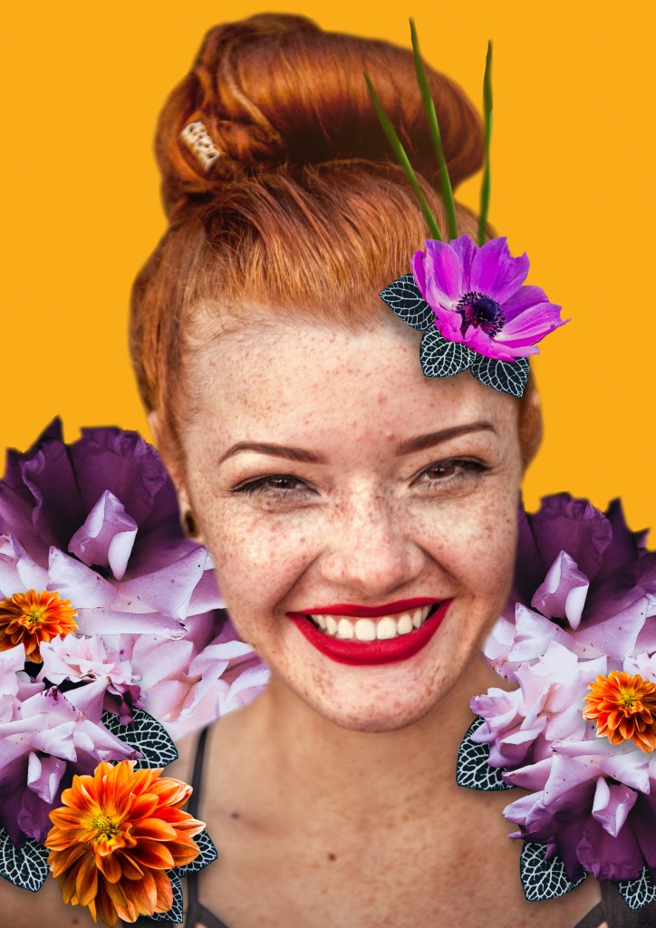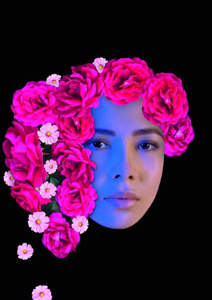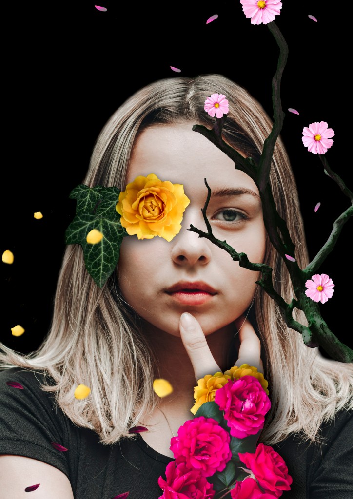 Designing exiting and surreal collages using faces and nature pictures that were masked in Photoshop. I experimented, with compositions these portraits, flowers and plants, placeing them over, under and around the faces.