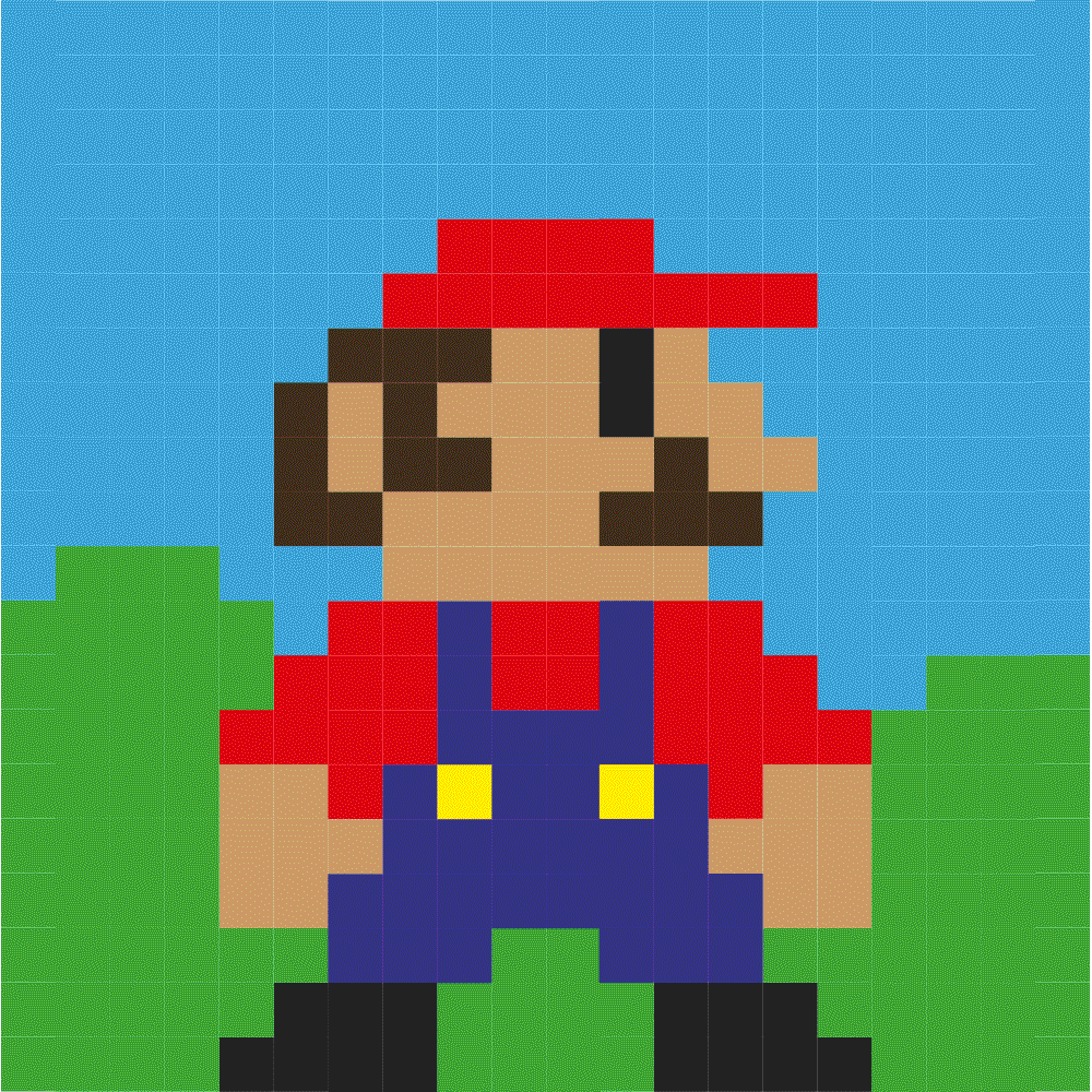 In Illustrator I put together squares to make a Pixel picture. I made the squares slowly move piece by piece, so they look like they move. I then saved the Pixel picture as a smartobjekt in Photoshop and put them together in the right order and right speed. And just like that I made a view GIF`s.